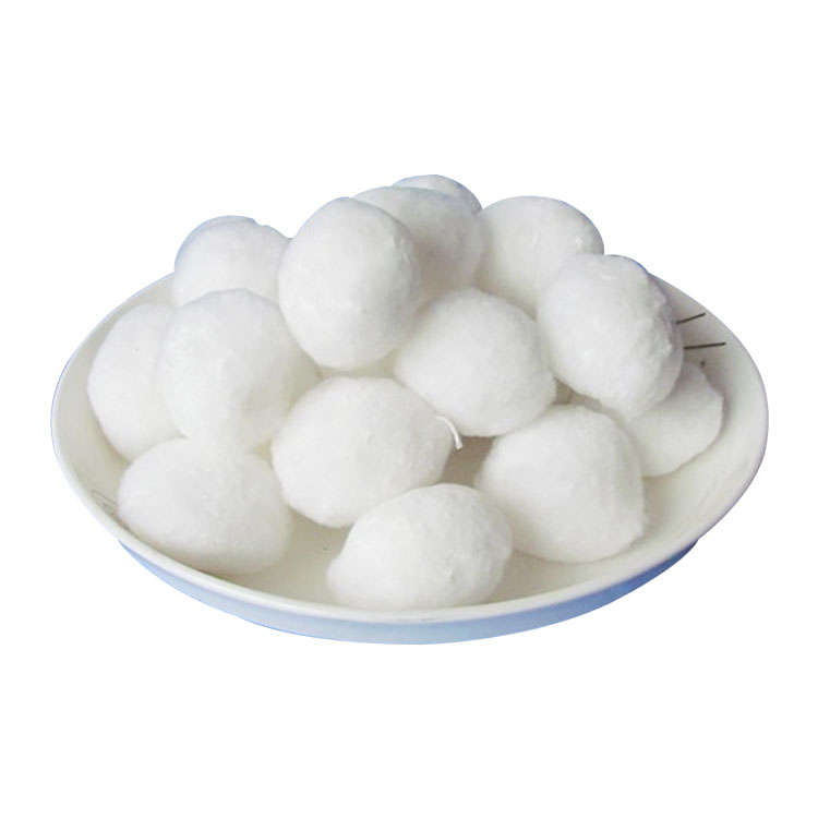 纖維球濾料是由纖維絲扎結而成的,它與傳統的鋼性顆粒濾料相比具有彈性效果好,不上浮水面,空隙大,工作周期長,水頭損失小等優點。